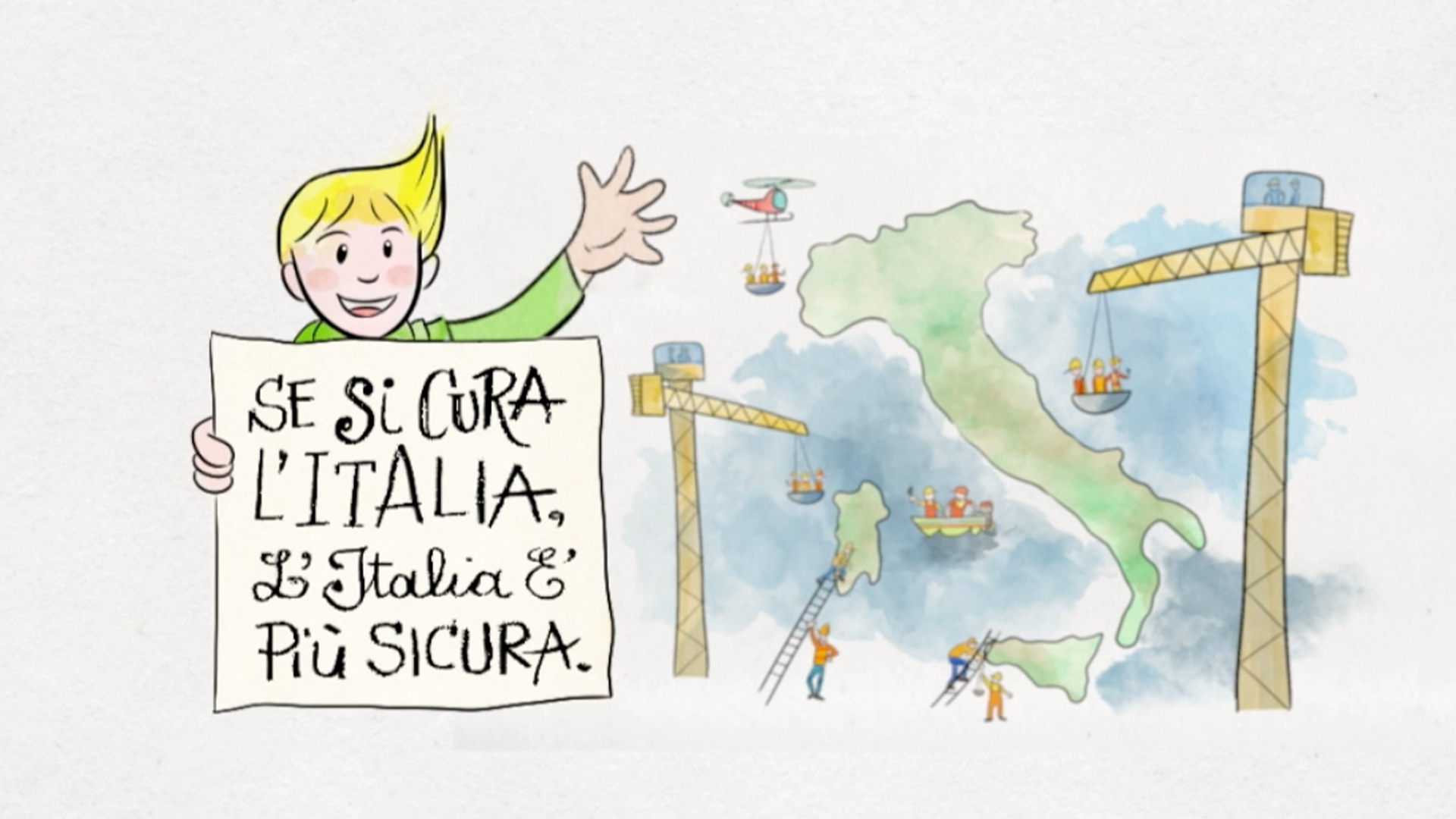 Il nostro spot per la Presidenza del Consiglio dei Ministri ha fatto scuola. Una narrazione semplice e diretta,   basata su un’animazione godibile per ogni target e su un messaggio fattuale, dal tono simpatico ma autorevole. Obiettivo:  sottolineare l’importanza di intervenire in modo concreto nella prevenzione delle criticità, abbandonando la logica dell’emergenza. La campagna è stata diffusa in TV e in radio, sui social network e sui monitor di stazioni ferroviarie, aeroporti, aree di servizio.